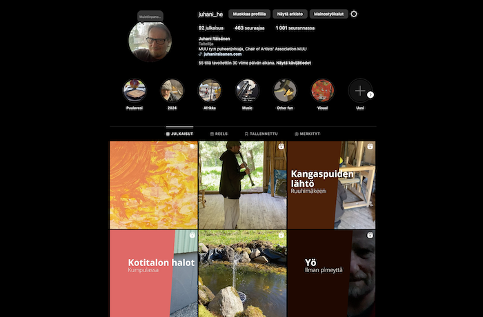 I regularly publish stories and other posts on my Instagram account. Join my followers! @juhani_he