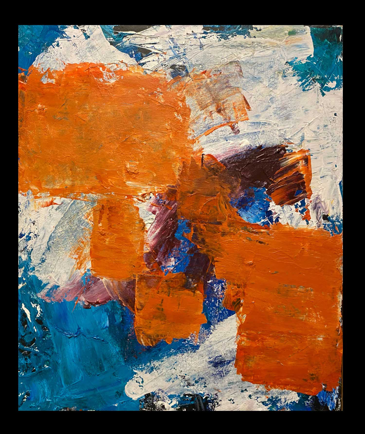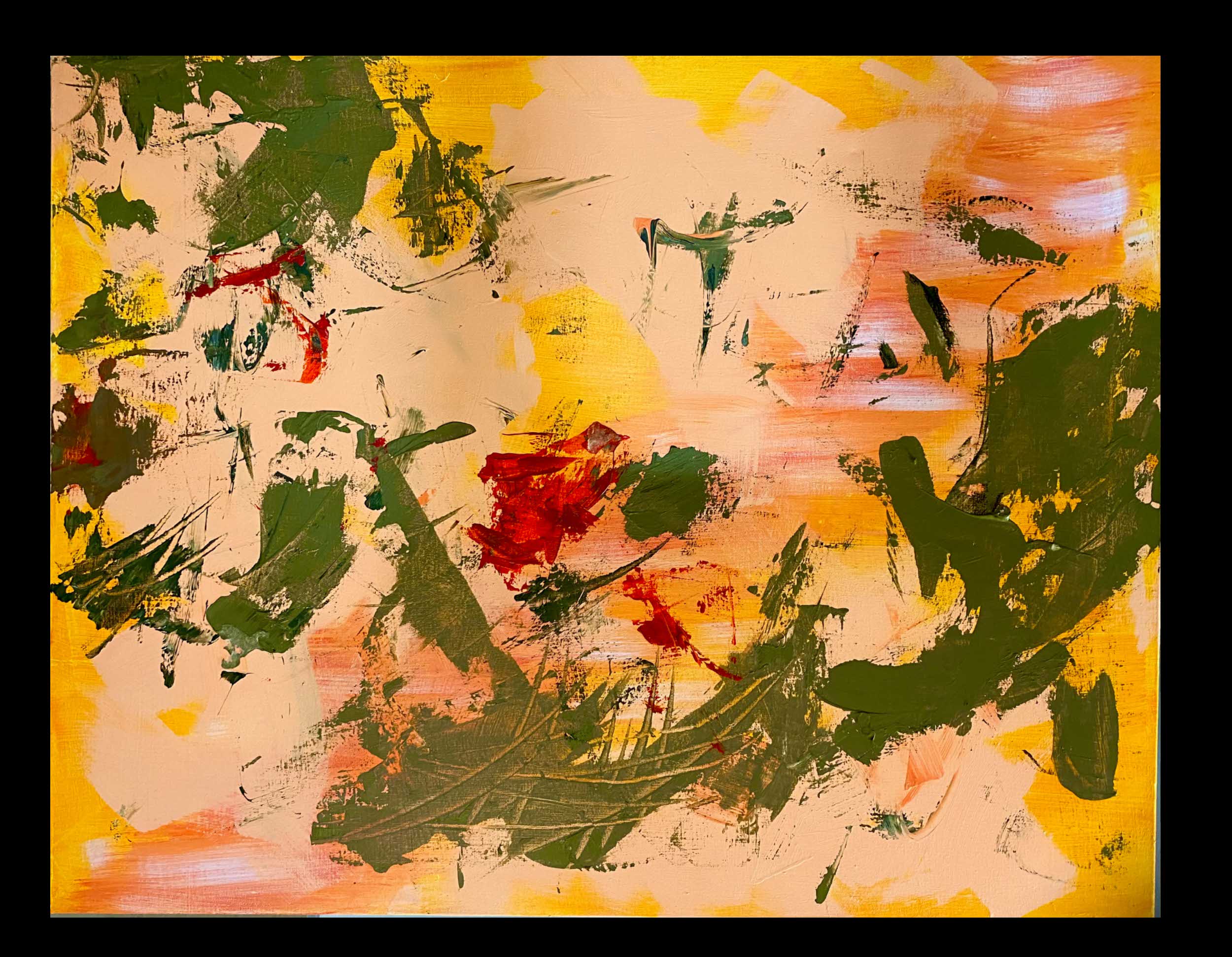 I mainly create abstract, colorful works using acrylic paints..